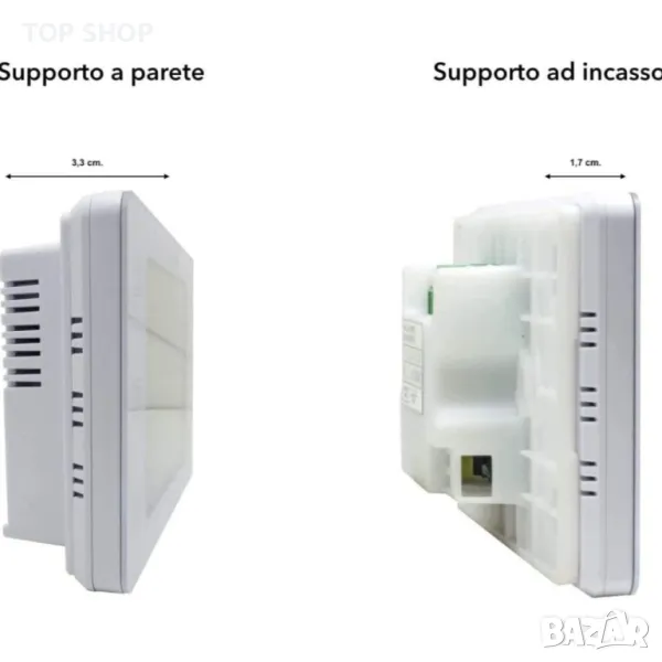 Възможност за програмиране на всеки ден от седмицата по различен начин - Двубандов wifi чип + Bluetooth за бърза синхронизация със смартфона - Стенен или вграден монтаж с помощта на специалната опора, доставена в пакета