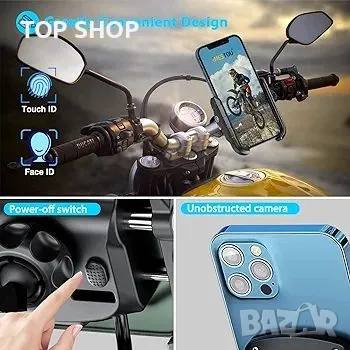 Две лесни инсталации: Подходящи за кормило с диаметър 7/8", 1", 1-1/4" за вашия мотоциклет, ATV, мотопеди, снегомобил. Може да се монтира и върху основата на огледалото за обратно виждане чрез адаптера в опаковката.