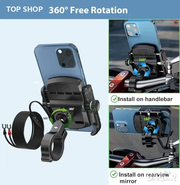 Висококачествен и водоустойчив материал: Мотоциклетното зарядно устройство за монтиране на мобилен телефон е направено от автомобилен ABS, здраво и издръжливо. С IP66 водоустойчив капак на USB порта за удължаване на живота на USB зарядното устройство на държача за телефон.