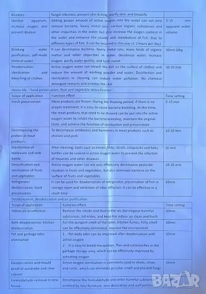 За детоксикацията на водата с озон активен кислород, което не само ефективно разгражда пестициди, за стерилизиране на частици от плодове, в плодовете и зеленчуците, но и елиминиране на бактериите: 20-40 минути (в зависимост от обема).