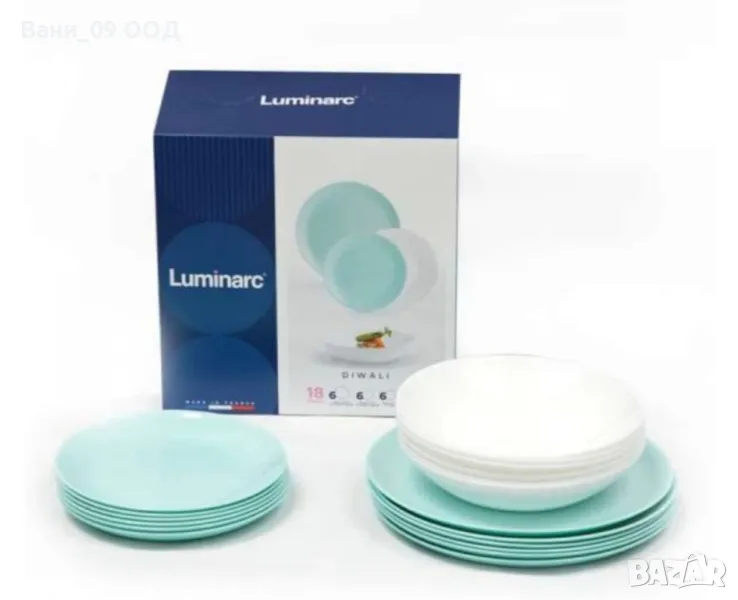 Невероятната комбинация от тюркоаз и бял цвят прави този сервиз за хранене наистина страхотен! Създава се лятно настроение, усещане за море и лек бриз. Комплектът е с много качествена изработка, която позволява да се използва съдомиялна машина и микровълнова фурна.