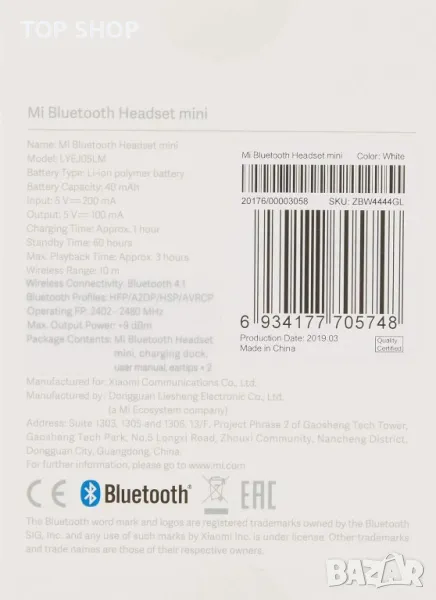 Xiaomi Mi, Bluetooth слушалка Xiaomi Mini бяла
