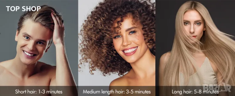 Първоначално изсушете косата със сешоар в рамките на 3-5 минути.