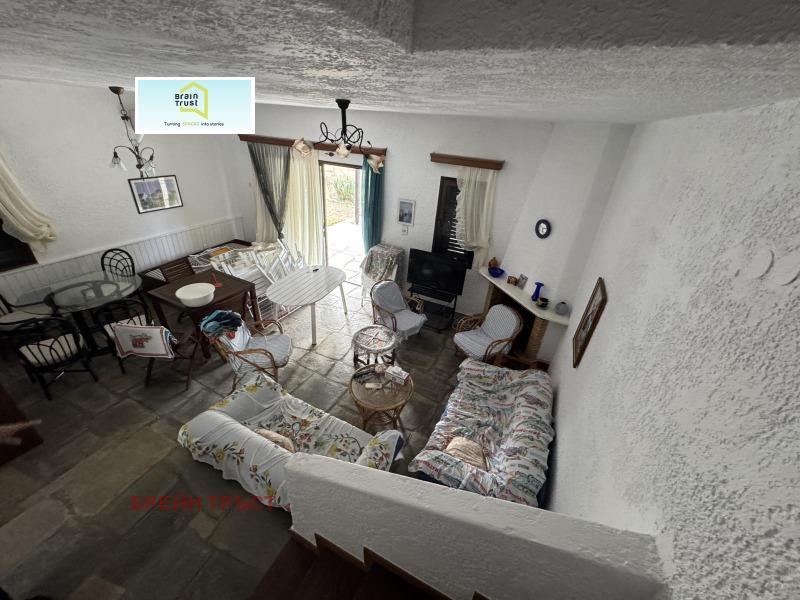 Къщата е с площ от 110 кв.м., изцяло обзаведена, разполага с дневна с трапезария и кухня с изход към двора, три спални, баня с тоалетна, тоалетна за гости и антре. Мазе в сутерена на сградата с площ от 55 кв.м..