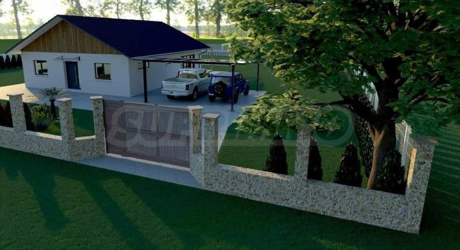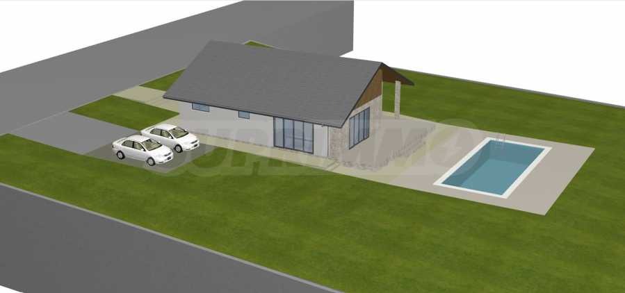 Има разрешително за строеж и готов проект за къща на един етаж с РЗП от 140 кв.м и открит басейн. При желание от страна на купувача ще бъде предоставена цялата документация.