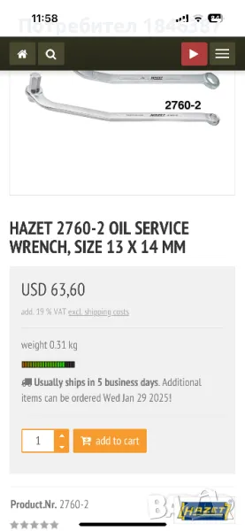 1.Ключ Hazet 2760-2 Germany.Размер 13 х 14 мм.Цена 39 лв.