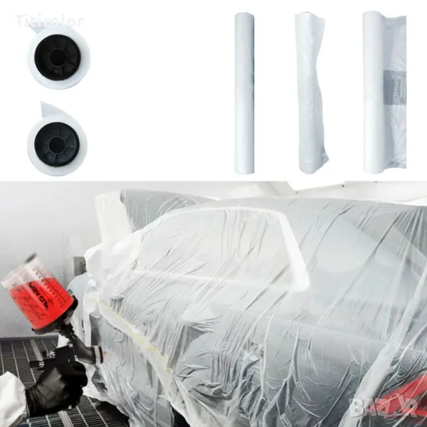 Безцветен полиетилен, сгънат на ширина на ролката 96 см. Устойчив на температура до 110°С. Отлично абсорбира боята. Статично зареден, идеално прилепва по контурите на автомобила.