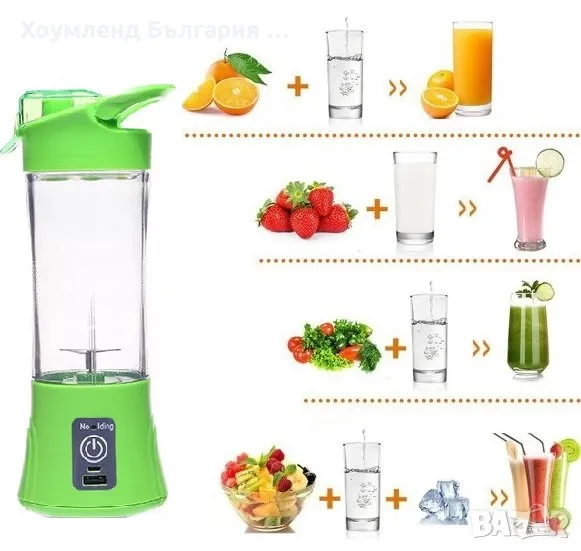 Погрижи се за набавяне на витамини и си приготви смути, сок, шейк, фрапе ли протеинова напитка от зеленчуци, плодове, житни растения, йогурт, мляко и … инаги прясна напитка – с помощта на USB кабела зареди у дома батерията на бутилката за да е винаги готова и си приготви напитка от пресни плодове по всяко време, където и да си. Вземи я със себе си на къмпинг, екскурзия, тренировка, в училище, на работа и …, за да можеш за секунди да си приготвиш хранителна мултивитаминозна бомба.