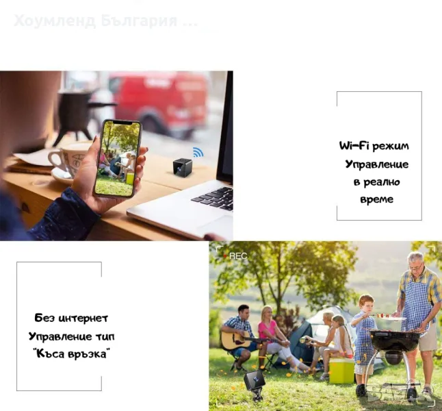 - Наблюдение в реално време през телефон и таблет;