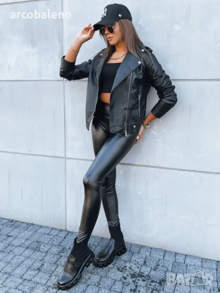 Овърсайз байкърското яке е нещо, което не може да липсва в гардероба на една стилна жена. Моделът се закопчава с цип. Джобове с цип и декоративни джобове придават характер на цялостната визия. Цялото нещо ще изглежда перфектно в комбинация с кожен панталон.