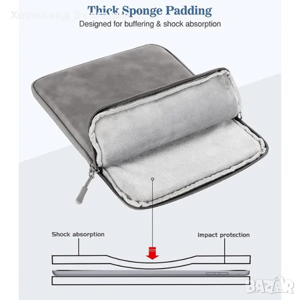 Подплатените отделения и предпазни панели осигуряват допълнителна сигурност за вашия таблет, като го предпазват от въздействието на външни фактори.
