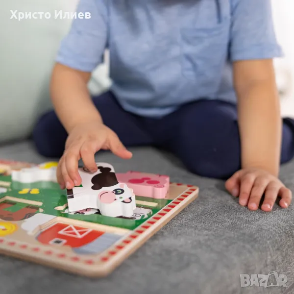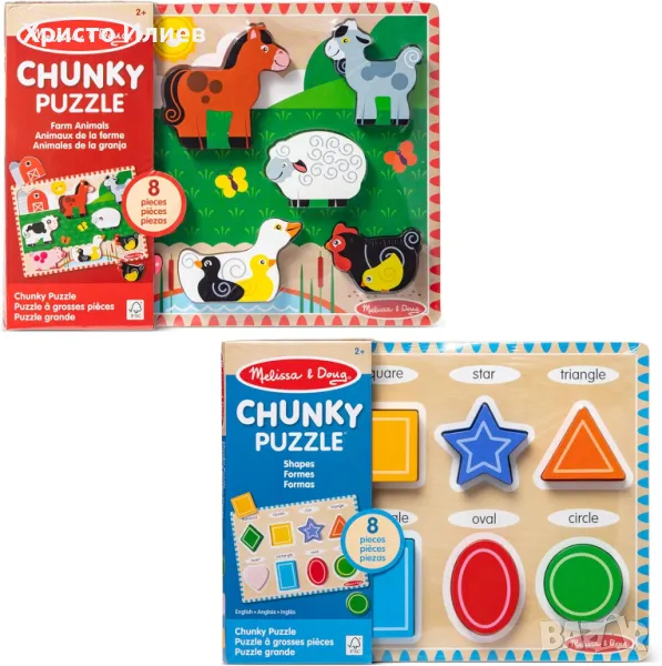 Детски пъзел 8 части Селскостопански животни Геометрични фигури 2бр Melissa & Doug