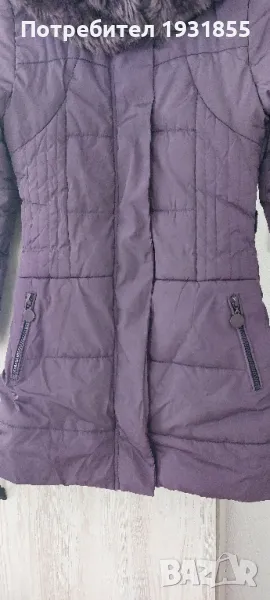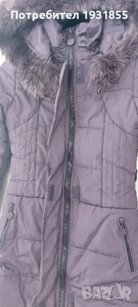 Зимно яке лилаво,качулка с пух сваля се с цип.Два предни джоба с ципчета,