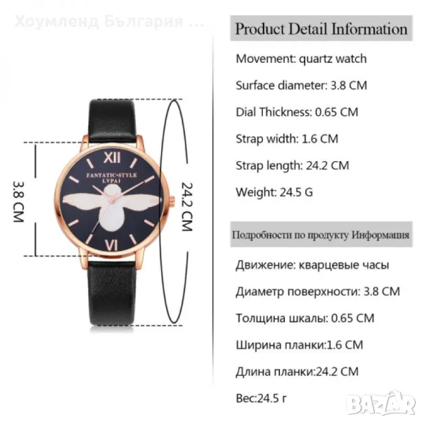 Часовникът е с висококачествен японски кварцов механизъм. - задна част на корпуса на часовника от неръждаема стомана - каишка от еко кожа