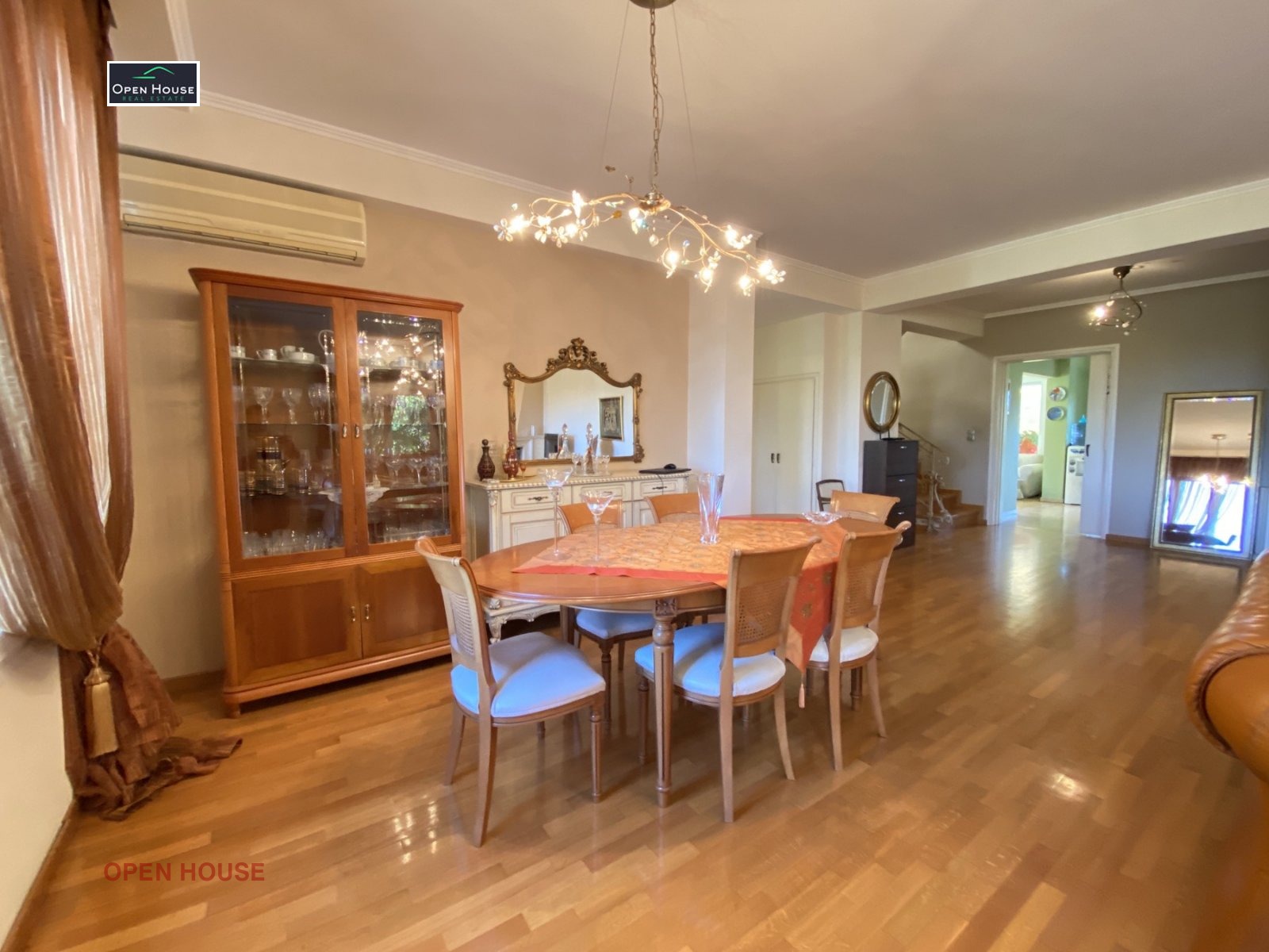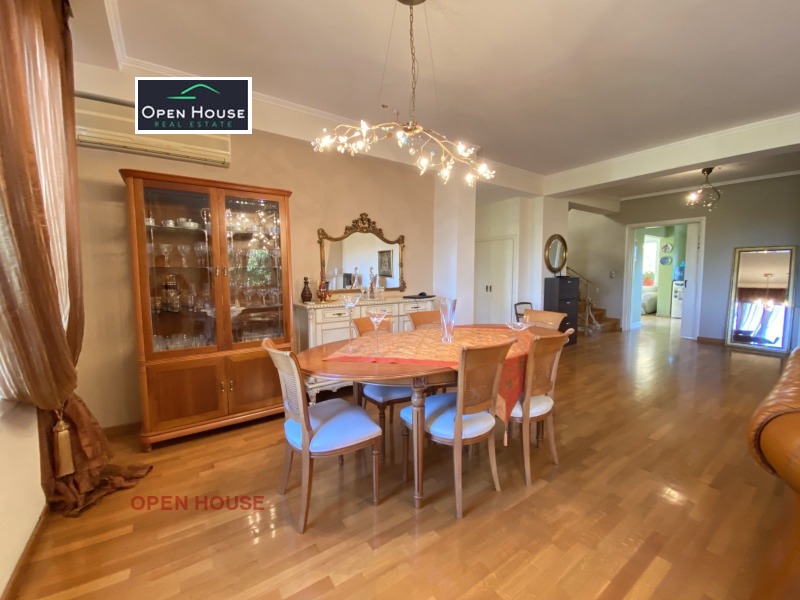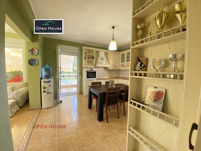 Неа Перамос. На приземния етаж са разположени дневна и кухня с отворен план, спалня, баня, както и фитнес зала. Във всекидневната има прекрасна камина, а отоплението е подово. Пространството е напълно обзаведено и оборудвано с всички необходими електроуреди. Също така има възможност да се обособи самостоятелно и да се превърне в самостоятелно жилище. Чрез вътрешно стълбище се стига до втория етаж, където се намират още една дневна и кухня в отворен план, стая за гости и баня. На втория и последен етаж има 3 спални, една от които е родителската, и накрая още една баня. Къщата е безупречно проектирана, с просторни и функционални пространства. Думите са излишни, когато става дума за външната среда на къщата. Огромна градина, заобиколена от зеленина, идеална за моменти на абсолютен покой и релаксация , но също така и за всякакви други дейности. С барбекю и покрито паркомясто за 3 автомобила. Следователно, без да се замисляме, това е един истински идеален избор за закупуване на къща, отговаряща в максимална степен на всички изисквания.