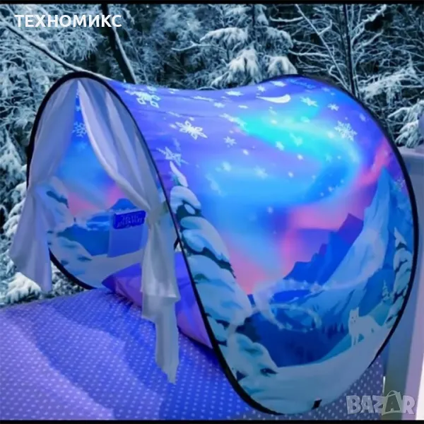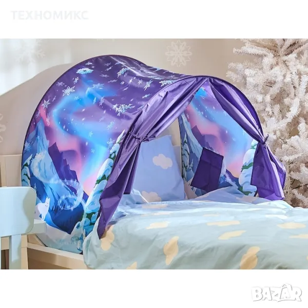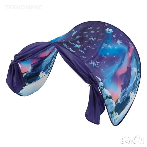 Превърнете леглото на Вашето дете в един магически свят обсипан със звезди и снежинки. Палатката обещава сладки и спокойни сънища. Създава добре настроение. А и към нея има удобна чанта за съхранение, така че без проблем ще може да я вземате навсякъде с Вас.