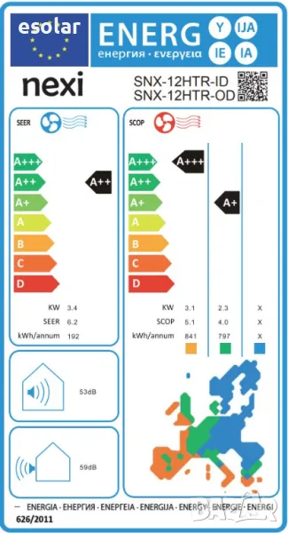 Инверторни климатици NEXI. От завода на AUX. Доставка за 1 ден. Мощност отопл. 3.5 kW, Ен. клас охл. A++, R32, Инверторен модел, Турбо режим, Сезонен енергиен коефициент (SEER) охлаждане 6.19 Сезонен енергиен коефициент (SCOP) отопление 4.03 A+