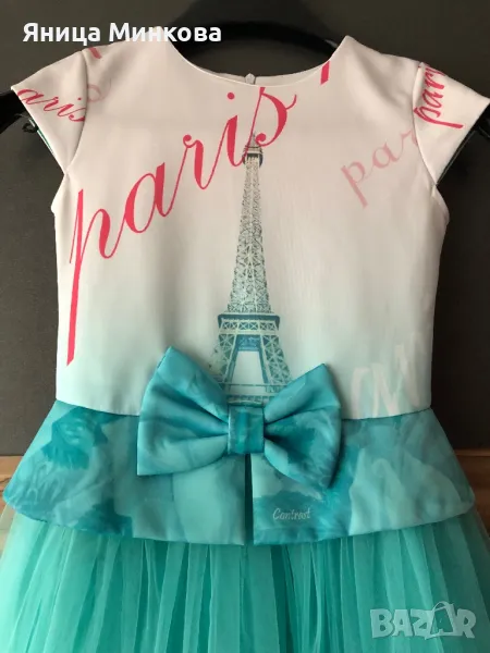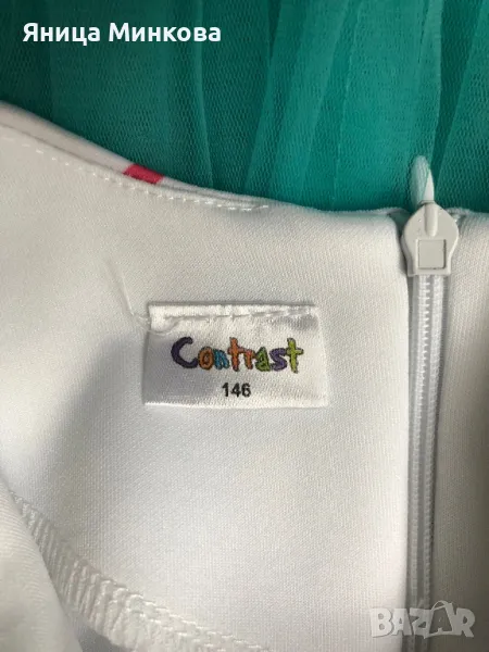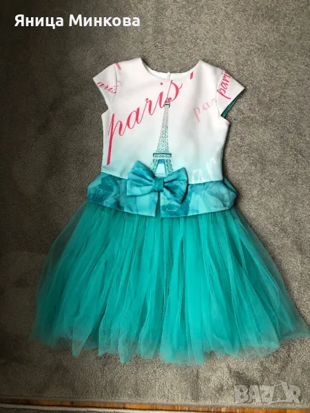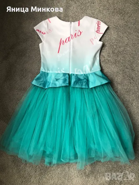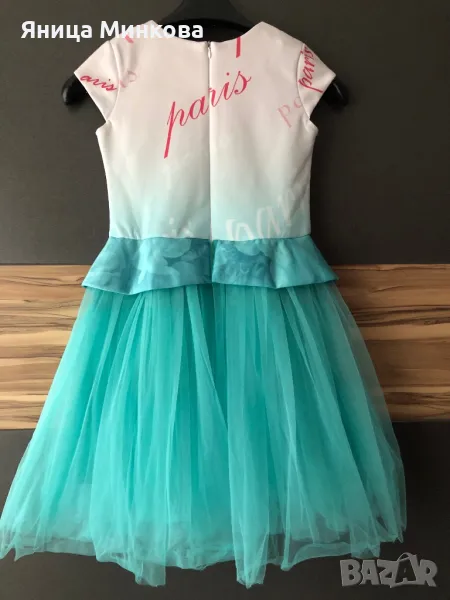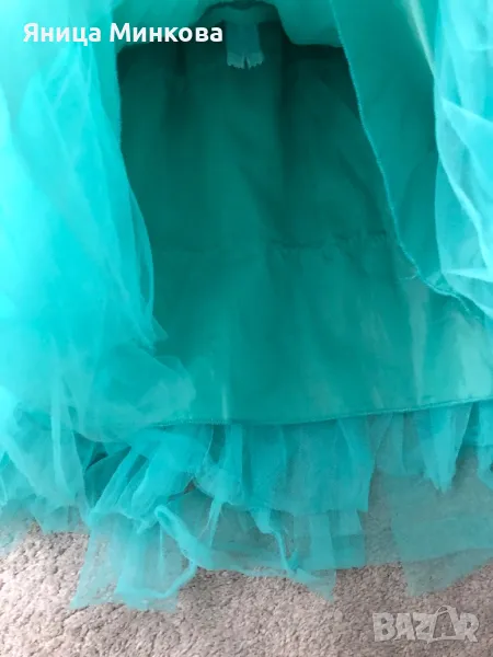 В отлично състояние, без следи от употреба. Обличана един път за повод. Дължина- 80 см, от рамо до рамо- 30 см, от подмишница до подмишница- 36 см едностранно. Изпращам с преглед и тест.
