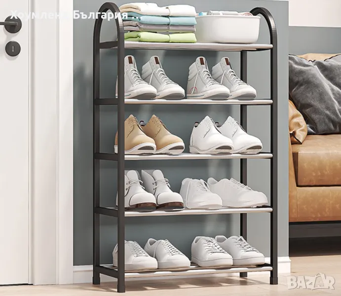 5 нива. Перфектно ще пасне в по-малки коридори, където няма много място и просто имате нужда от етажерка, на която да поставите своите обувки.
