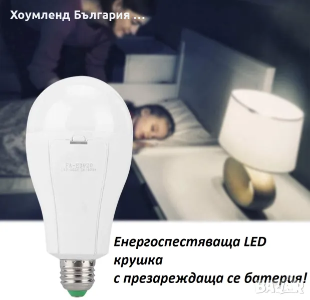 Енергоспестяваща LED крушка, която се презарежда докато свети. това ви гарантира осветяване, дори когато няма ток.