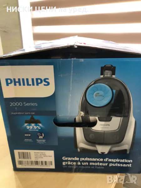 Прахосмукачката Philips 2000 Series с мощност 850 W е безторбен модел, предназначен за ефективно почистване на дома. Тя използва