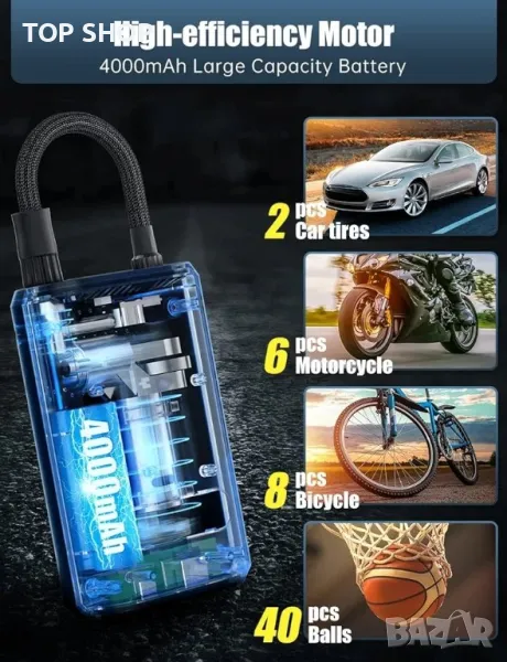 Нагнетател за гуми Oasser, преносим въздушен компресор, безжична въздушна помпа за автомобилни гуми