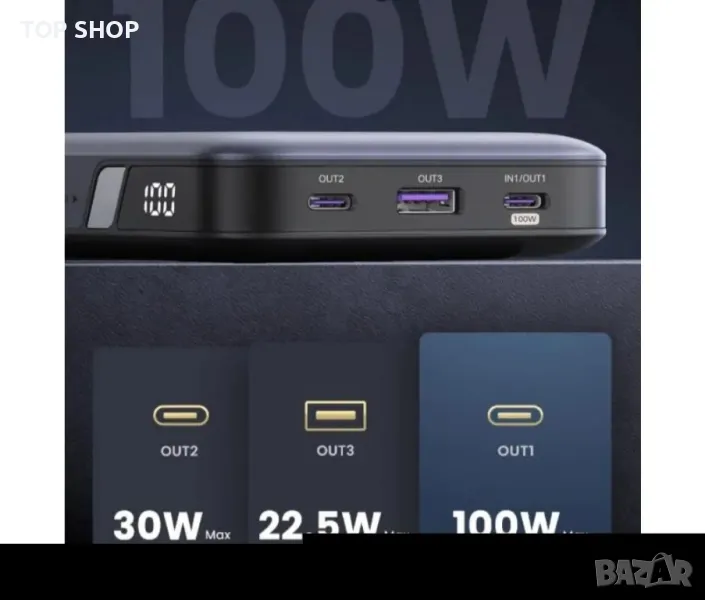 Ugreen - PB720 предлага достатъчно мощност за всичките ви устройства. Разполага с 3 порта и функция за бързо зареждане.Цифров LED екран ясно показва оставащия заряд. Комплексна система за защита прави процеса на зареждане безопасен и надежден.Съвместима е с почти всички устройства - MacBook Pro 16", M2 13" 2022, MacBook Air 13", HP Spectre, Huawei MateBook, NoteBook, iPad Pro/Air, Tab A8/S8, iPhone серии 15/14/13/12/11/SE 2022/2020, AirPods Pro, Galaxy S24 Ultra/S23/S22/S21/S10/Note 10, Pixel 7 Pro/6/5 и др