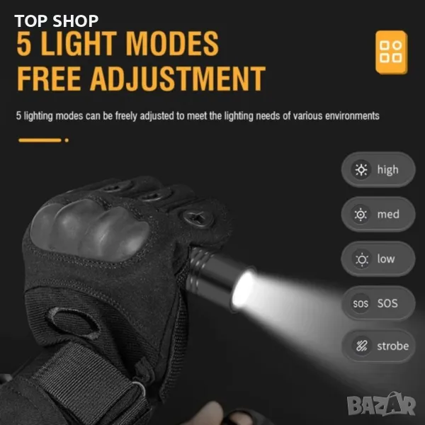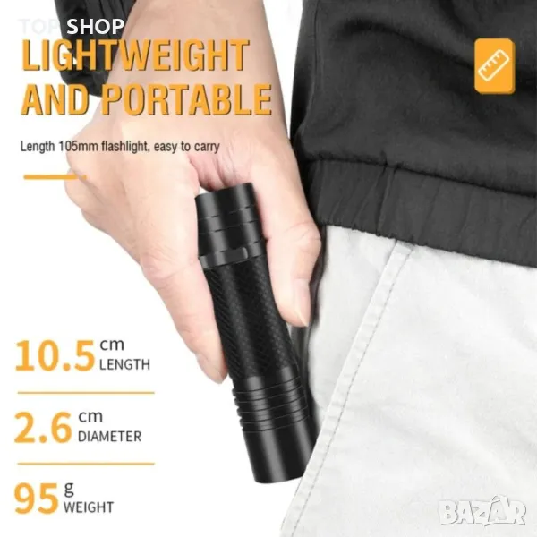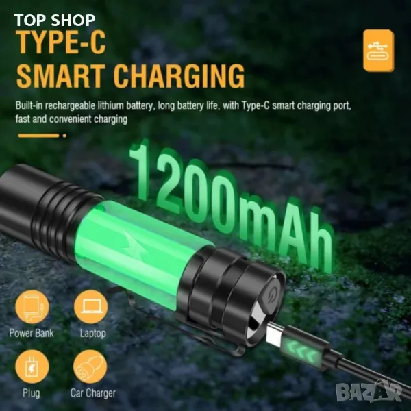 Супер ярко LED фенерче V8 800 лумена TYPE-C Акумулаторна 5 режима на осветяване → Обява 48770925