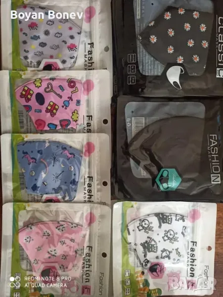48 бр, маски за лице с дизайн. За многократна употреба. Продават се само всички заедно. Обща цена 48лв.