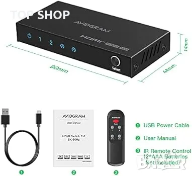 Истински 8K Ultra HD] Този насочен HDMI превключвател с 2 порта Avidgram позволява два HDMI източника към един HDMI дисплей, специално проектиран да работи с 8K@60hz, 4K@120Hz, 1080p@240Hz, също така поддържа HDMI 2.1, HDCP 2.3 / 2.2 / 1.4, HDR10, HDR10+, Кукла. от vision, 3D, CEC C, 48Gbps високоскоростна видео лента.