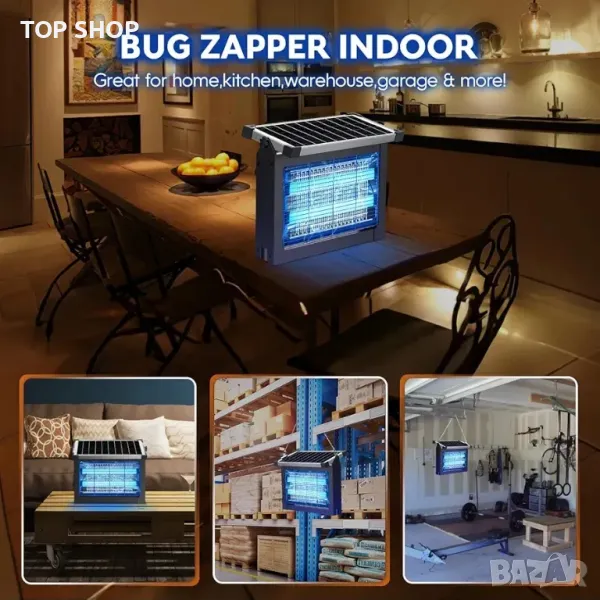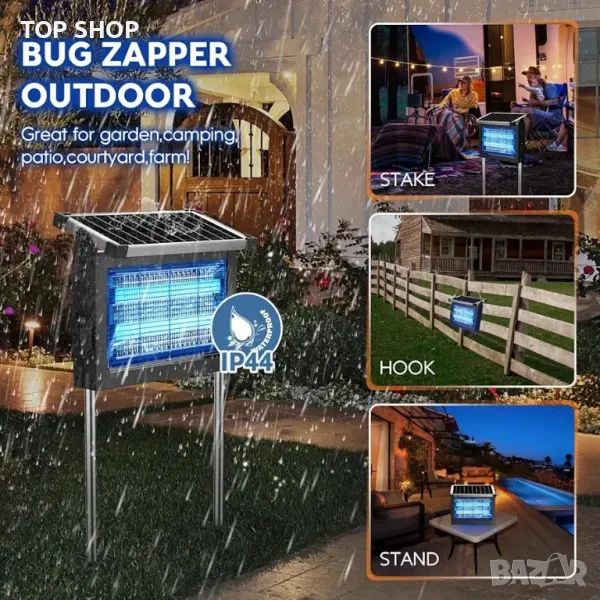 Модернизиран соларен ЗАППЕР 4 в 1: Устройството за унищожаване на насекоми комбинира 4 функции в 1: соларен уред за унищожаване на насекоми, вътрешен и външен уред за унищожаване на насекоми, преносима безжична мухоловка, уред за къмпингуване. Слънчево захранвани дизайнерски характеристики за използване на слънчева енергия за безпроблемна работа, без усилие привличат и елиминират широка гама от досадни летящи вредители, като комари, мухи, молци, пчели, оси и др. Нашият убиец на комари не използва никакви химикали и не излъчва дразнеща миризма, което е безвредно за хората и домашните любимци.