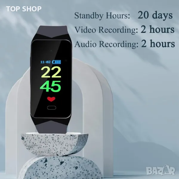 ? 【Високо прикриване】 Камерата OTADUG е шпионска камера, маскирана като „фитнес гривна“. Може да записва видео и аудио и да проверява часа. Тъй като камерата е скрита във фитнес тракера, нейният размер е двойно по-голям от този на обикновения фитнес тракер, което ви позволява лесно да виждате времето. Шпионската камера е маскирана като фитнес гривна, която е толкова разпространена в ежедневието, че не привлича особено внимание.