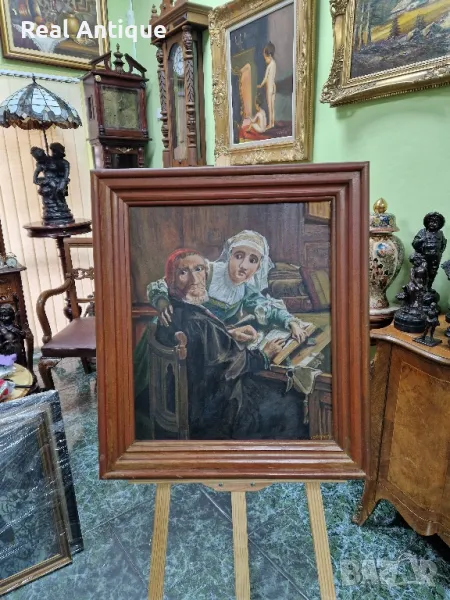 Прекрасна голяма антикварна авторска белгийска картина масло върху платно → Обява 48772614