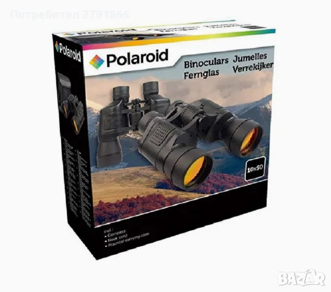 Бинокъл Polaroid 10x50 с вграден компас, чанта за рамо, ударо и водоустойчив чисто нов
