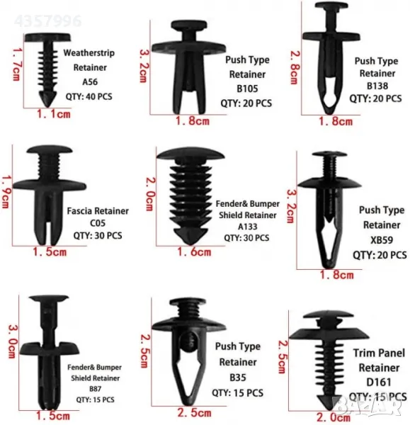 К-т щипки универсални, клипсове 421бр. За кори и др. С инструмент , снимка 1 - Аксесоари и консумативи - 48773076 К-т щипки универсални, клипсове 421бр. За кори и др. С инструмент , снимка 2 - Аксесоари и консумативи - 48773076 К-т щипки универсални, клипсове 421бр. За кори и др. С инструмент , снимка 3 - Аксесоари и консумативи - 48773076 К-т щипки универсални, клипсове 421бр. За кори и др. С инструмент , снимка 4 - Аксесоари и консумативи - 48773076 К-т щипки универсални, клипсове 421бр. За кори и др. С инструмент , снимка 5 - Аксесоари и консумативи - 48773076 1/5