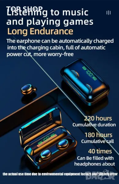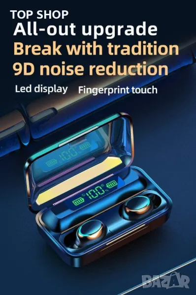 Bluetooth слушалки TWS F9, Powebank, 1500mAh