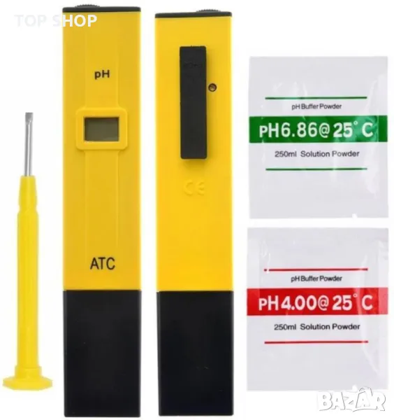 Диапазон на измерване от 0-14 pH - много точни, надеждни и бързи отчитания, включени в глюкомера са 6,86 и 4,01 pH буфери за калибриране. Предлага се с калъф за носене и малка отвертка за калибриране, лек, ръчен дизайн за преносимост и удобство. Лесен е за използване - просто отстранете защитната капачка и потопете електрода в разтвора, който ще измервате. Включен пакет: 1 × PH метър, 1 × куфар за носене, 1 × отвертка за калибриране, 2 × PH буферен прах (за калибриране), 1 × ръководство за потребителя. PH метърът е идеално устройство за тестване на киселинността или алкалността на течности, чудесно за всички домашни и лабораторни приложения за тестване на pH, включително аквариуми, плувни басейни. Спецификации: Диапазон на измерване: 1-14 pH Резолюция: 0.1 PH Батерии: 3x 1.5V LR44 бутонна клетка (AG13) Регулиране: тример потенциометър Автоматична температурна компенсация: 0-50°C (32-122°F) Размери: 151 x 31 x 20 mm Тегло: 50 g Пакетът включва: 1 x рН метър 1 x куфар за носене 1 x отвертка комплект пакети за калибриране