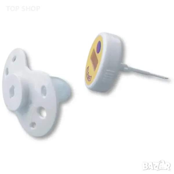 Биберон за измерване на температурата по време на засмукване при пълна безопасност. Идеален за всички деца, които са неспокойни по време на измерване на температурата. Единственият, който се състои от две делими части: електронната част може да се отстрани, за да позволи стерилизация на майката, без да се повреди електронната част. Другите продукти на пазара не са делими и следователно не са лесни за почистване. Само манекенът TeMP от Elemed има безопасно байонетно захранване, което ви позволява да почиствате залъгалката отделно. Идеален, ако двама братя са болни едновременно, за да можете да го използвате след стерилизация. Дигиталният термометър е с висока прецизност и надеждност. Регистриран е в Министерството на здравеопазването като медицинско изделие за измерване на температура.