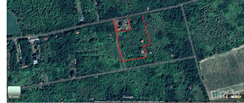 Мястото се намира в Садовете . Седем декара земя има и две вили които са конструктивно здрави. Свалени/откраднати// са ел. инсталациите.Мястото има и геран/кладенец/ с вода и пуснати тръби за помпа.Не е стопанисвано от 10 г. както се вижда от снимките.До мястото се стига по долния път/покрай СБАто/ около 1.8 км. в посока към Долно Линево . Земята е с нотариален акт. Вилите не.