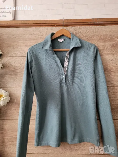 Спортно елегантна блузка на макове POLO.Брандирано лого про гърдите, на всички копчета и при яката под копчетата. Много свеж цвят тюркоаз.Размер М Цена 49лв