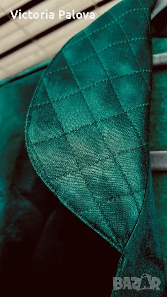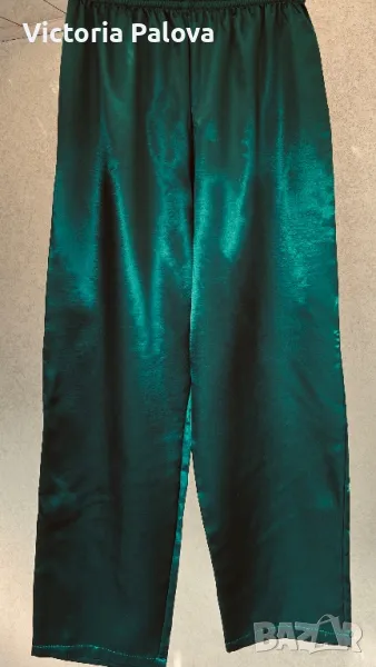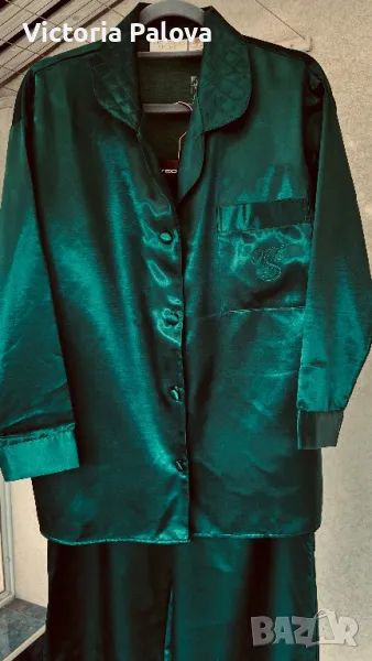 Много красива пижама с избродирано лого на джоба, облечени копчета, малки цепки отстрани(7см). Горнище : паднало рамо - 55см, ГО - 59см, дължина - 74см, ръкав - 50см. Долнище : талия с ластик от 35 до 48см, дължина -104 см, крачолът горе - 36см, долу - 23см.