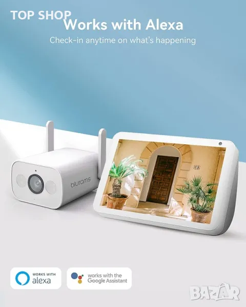 Бърза инсталация и лесна настройка на мобилно приложение: Домашната охранителна камера Blurams осигурява бърза и лесна инсталация. С IP66 водоустойчив корпус няма да се налага да се притеснявате за излагане на външни елементи, независимо къде го монтирате. Нещо повече, външната камера може да работи с устройства Amazon Alexa и Google Assistant, което ви позволява да гледате видео на живо от камерата само като кажете няколко думи, вместо да отключвате телефона си, по-умно и по-удобно
