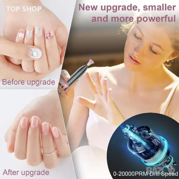 【Мощен мотор с 20 000 оборота в минута】 Максималната скорост на нашата бормашина за нокти е 20 000 оборота в минута, която може да бъде достигната в рамките на 3 секунди. Изработен от метален материал, моторът може да произвежда по-голяма мощност и ефективно да предотвратява генерирането на топлина. Това подобрение не само съкращава времето за лакиране на ноктите, но и удължава издръжливостта на машината.