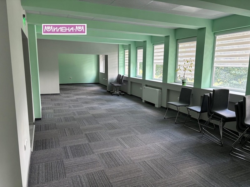 Милена М ЕООД ви предлага под наем представителен офис в офис сграда в центъра на Велико Търново. Имотът се намира в район с офис и жилищни сгради. Разположен е на целия втори етаж на четириетажна офис сграда с чиста площ 206кв.м., а с общите части 230 кв.м. Вътрешното пространство включва три офисни помещения, битовка и санитарни възли. Луксозно изпълнение с висока енергийна ефективност. LED осветление, отопление и охлаждане с термопомпа. Три проводна електрическа инсталация с токови защити. Комуникационна Gigsbit мрежа с 20 точки за работни места, 2 точки за мрежови принтери, 2 Wi Fi точки и 6 точки за камери. Система