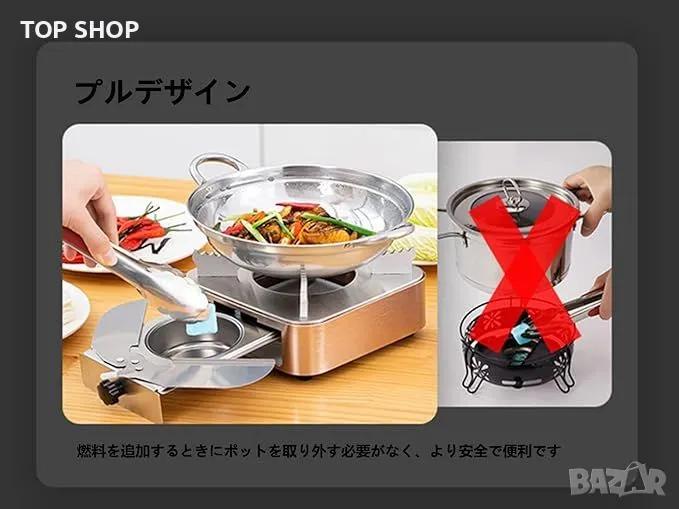Изтеглящ се капак: Преди алкохолът да изгори, покрийте печката директно с капака, за да изгасите пламъка. Изтеглящият се дизайн поддържа тигана безопасен и удобен, без да го местите