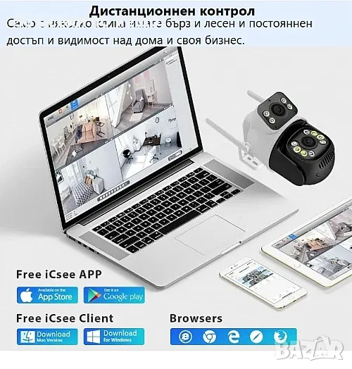 Възможност за работа с две различни приложения - iCsee или Amazon Alexa. W зависимост от вашето предпочитание, може да сдвоите двойната Wi-Fi PTZ външна камера към вече използвано от вас приложение;