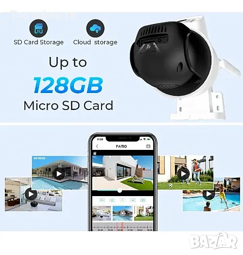 Възможност за съхранение на записи и видеа на SD карта до 128GB или Cloud Storage (облачно пространство);