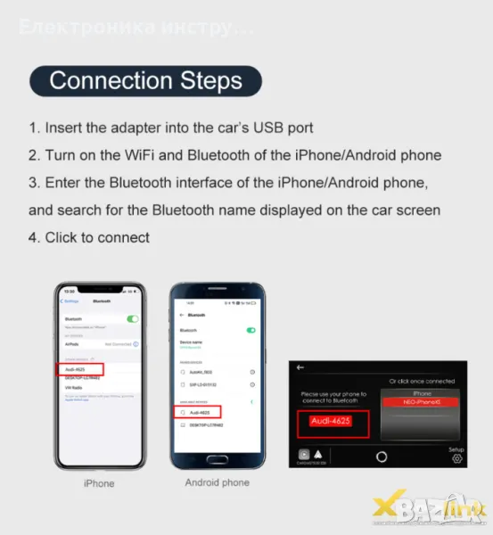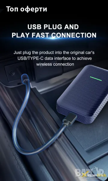 Оригинален с кабел към безжичен CarPlay Android Auto адаптер