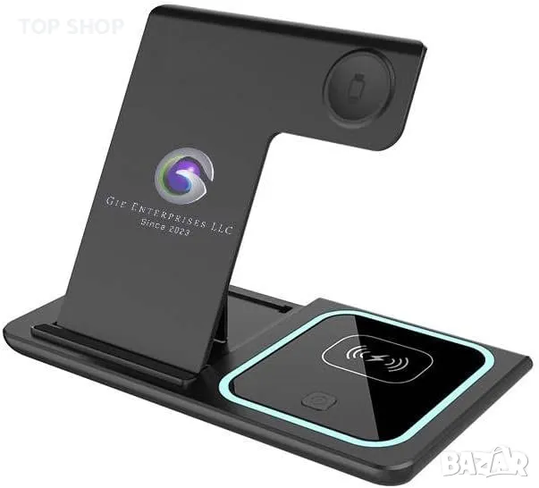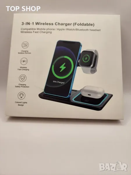 Множество устройства: Продуктът разполага с 15 W бързо безжично зареждане. 3 в 1 многофункционален, може да зарежда мобилен телефон, за Apple Airpods и iWatch едновременно. 3 в 1 безжично зарядно устройство за airpods pro 3) 2 намотки за по-голяма площ за зареждане, позволява вертикално или хоризонтално безжично зареждане. Уникален сгъваем дизайн, може да регулира ъглите към множество позиции Сертифициран по Qi/CE/FCC/RoHS,