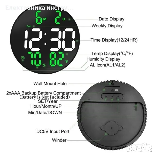 -функция за аларма: може да настройва и превключва ежедневната аларма с един почивен ден и два почивни дни
